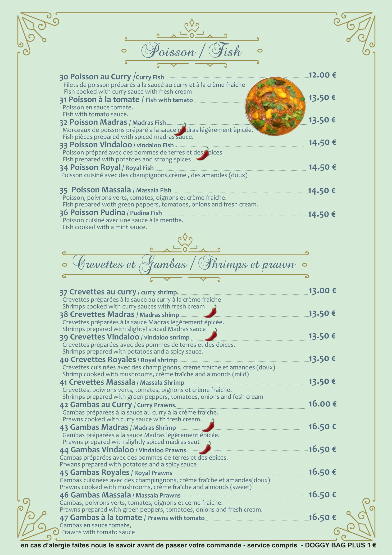 Appréciez la fraîcheur de nos plats de poisson, sublimés par des épices indiennes et une cuisson parfaite. Une explosion de saveurs à chaque bouchée !