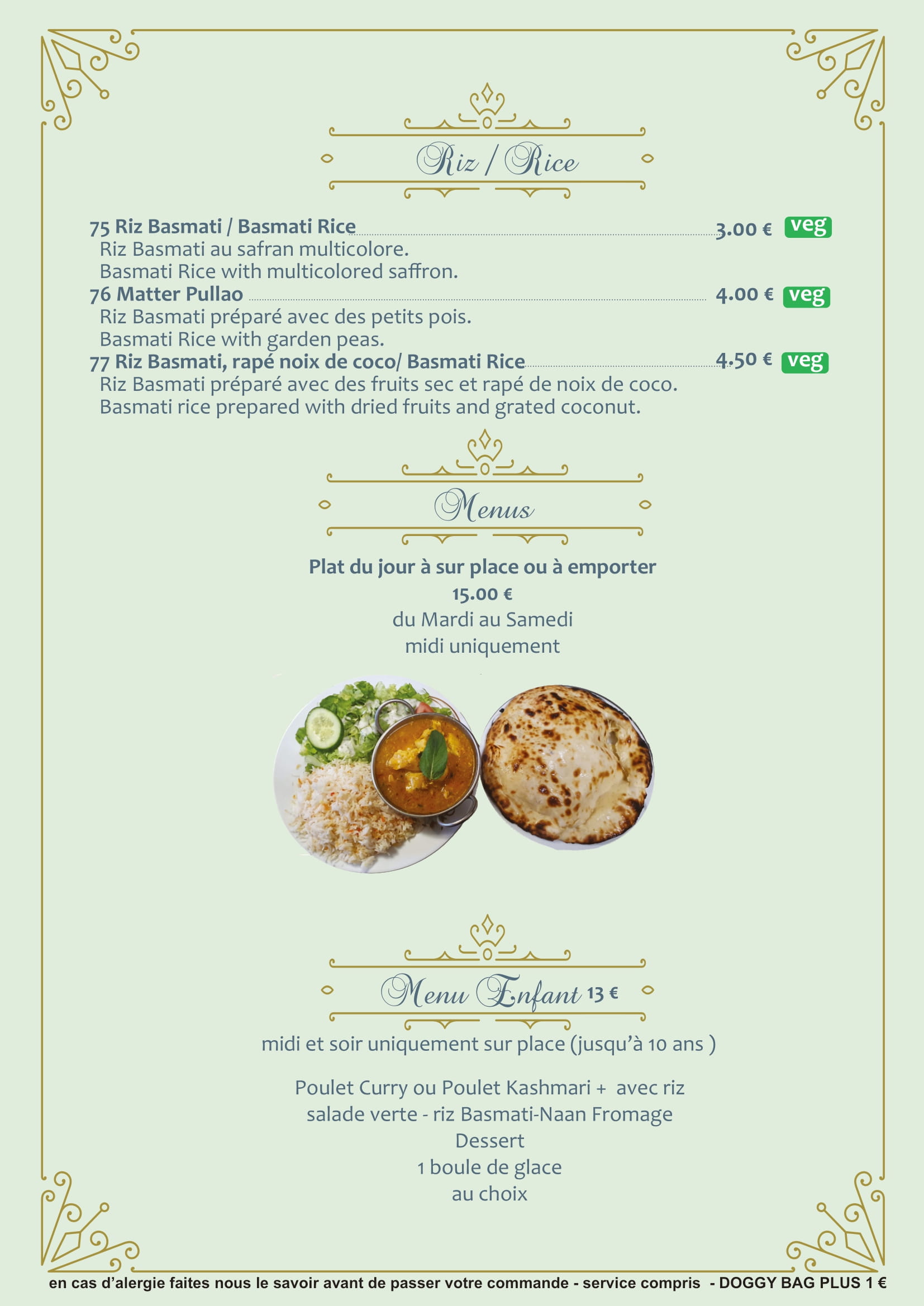Savourez nos délicieux plats de poulet, préparés avec des épices authentiques et une touche de tradition indienne. Un véritable festin pour les amateurs de saveurs exquises !